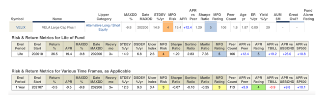 VELIX offers investors the opportunity to use a conservative and successful large cap blend fund from a management team with a strong track record and credentials from a firm aligned with its shareholders.