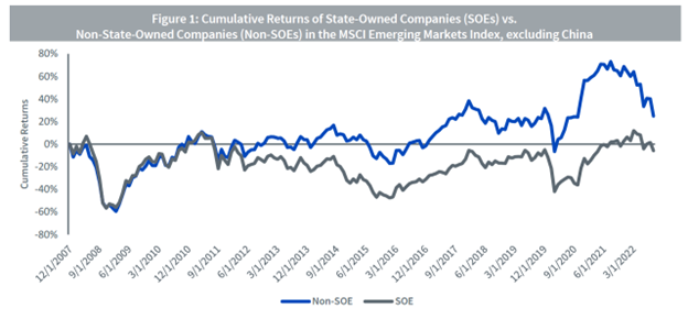 The best short exposition of the “emerging markets without China” argument was made by WisdomTree in “The Case for Emerging Markets ex-China Fund” (2022), which holds that state-owned enterprises are underperformers and, on the whole, low-quality enterprises.