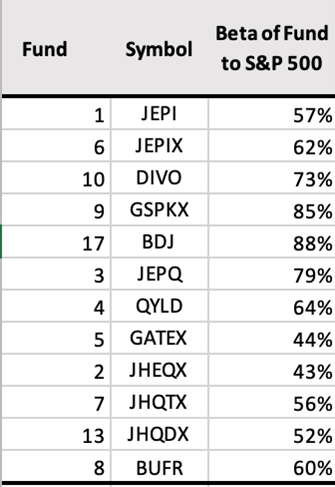 Why should we allow options funds an easy pass? In financial markets, there are multiple way to get to the same end point. We now know that options funds have a lower Beta to the S&P 500 (as calculated through Portfolio Visualizer)