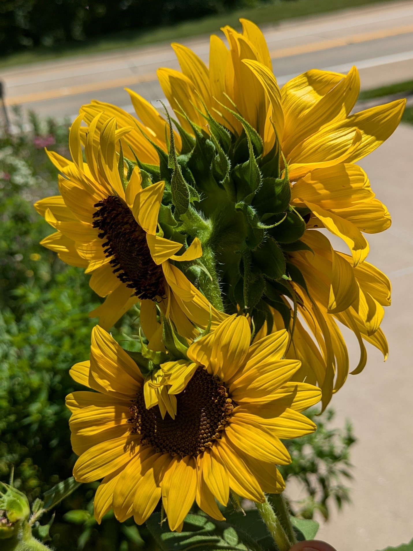 Rather than despair, I garden. And discover that nature will do as it pleases. In this case, seeding a sunflower patch next to my garage door for, let’s call it, no discernible reason.