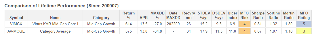 By Virtus’s calculation, higher-quality midcaps outperform lower-quality ones through both higher total returns (12.2% APR versus 10.4%) and lower volatility (15.3% standard deviation versus 18.5%). The KAR managers have executed the strategy with considerable and consistent success since its launch.
