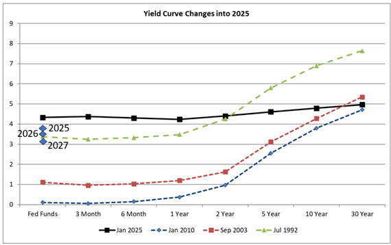 Figure #1: Yield Curves for 2025, 2010, 2003, and 1992