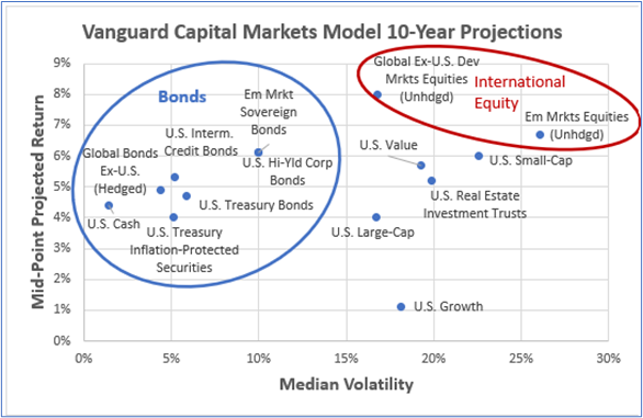 Figure #3: Vanguard VCMM 10-Year Return vs Volatility Projections