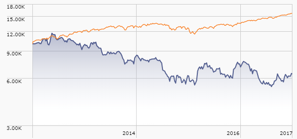 Footprints Discover Value Fund (DAVAX) liquidated on December 29, 2017. Yuh. Footprints is in blue on the chart below.