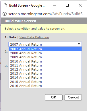 As of March 1, 2018, it’s still not possible to screen for 2017 fund returns.