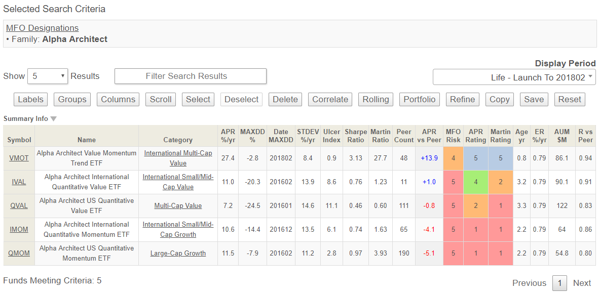 MFO profiled Alpha Architect’s US Quantitative Value ETF (QVAL) in December 2014, shortly after the fund’s launch and after our colleague, Sam Lee, praised QVAL’s strategy in a Morningstar piece, entitled “A Deep Value Quantitative Hedge Fund Strategy.” The firm’s CEO Wes Gray first impressed us during his presentation “Beware of Geeks Bearing Formula” at Morningstar’s ETF Conference in Chicago earlier that same year.