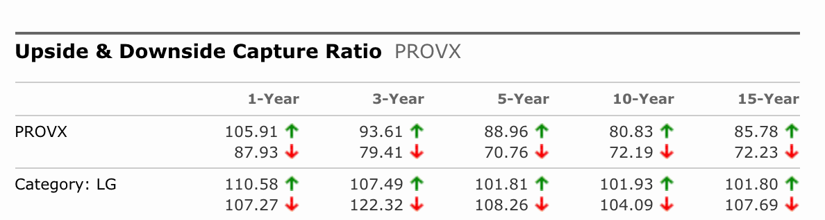 Here’s a look at the Upside & Downside Capture ratios, first from Morningstar.