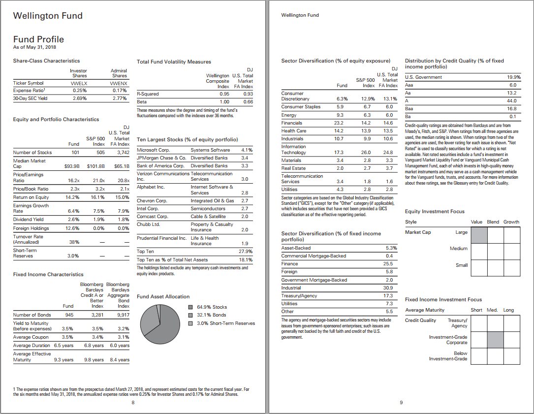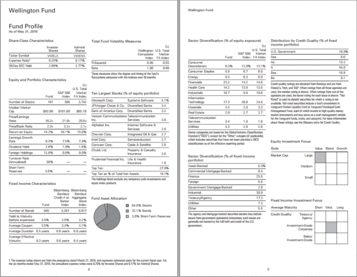 Gone, for example, are the Wellington Fund’s stock market symbols (VWELX or VWENX, for Investor and Admiral share classes, respectively), numerous stock portfolio metrics, including: number of stocks held, market cap, P/E and P/B ratios, return-on-equity, dividend yield, foreign holdings percentage, ten largest stocks, fund R2 and beta.