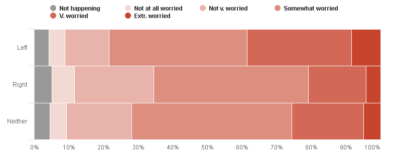 Worldwide, though, recognition of climate destabilization is not a partisan issue. With relatively minor differences, conservatives and liberals elsewhere both look at the evidence, gulp and nod. Below are those results from a survey of citizens in 18 developed nations outside the US.