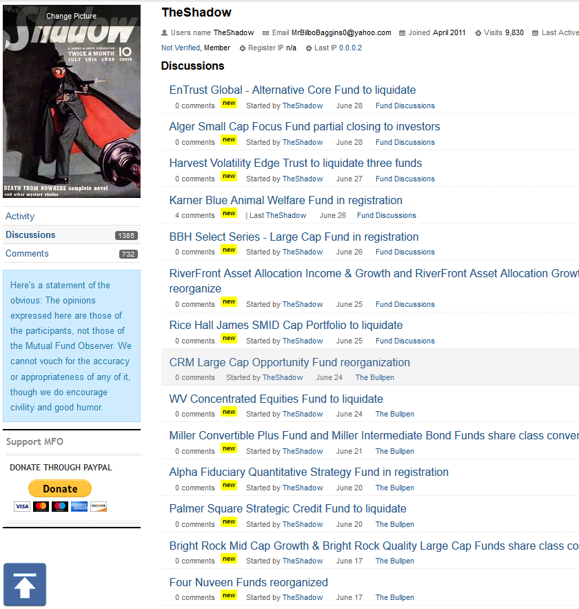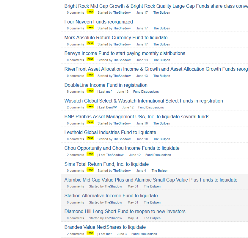 I write, frequently, with admiration and gratitude, about the contributions TheShadow makes both to our discussion board and to our final double-check of coverage in each month’s Briefly Noted column. For those wondering exactly how much cool stuff one person might extract from the swamp of SEC filings each month, here are The Shadow’s contributions for the month of June 2019.