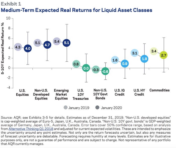 At the end of January, Mr. Asness’s AQR firm published projections that were (1) barely more encouraging and (2) falling.