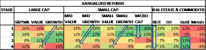 Table #5: Asset Class Performance by Business Cycle Stage