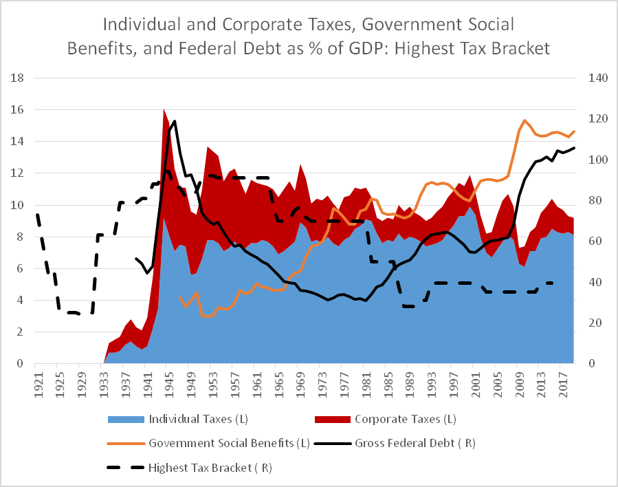 Chart #3: Highest Tax Bracket, Federal Debt to GDP, Government Social Benefits to GDP