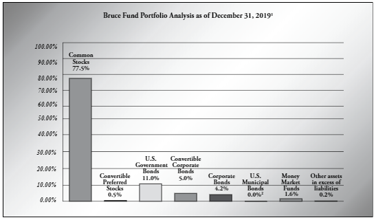 Bruce & Co. Bruce & Co. was launched in 1974 and is located in Chicago, Illinois. The firm reports have two non-clerical employees. They provide investment management services for the Bruce Fund, twelve individuals, and what looks to be a couple of charities and a pension plan. They do not, they aver, have a Twitter account. (We nod.) They do have $616 million in assets under management, as of March 2020.