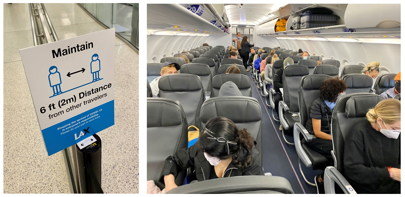 Jet Blue Flight 124 LAX to JFK was filled to about 2/3 capacity since the airline’s policy was to keep the middle sits empty. The one-way flight cost about $400, or twice as much as normal. Everybody wore masks. No drinks, including coffee, or food was available on the flight. Instead, passengers received a clear plastic bag with a bottle of water and a bag of pretzels upon boarding.