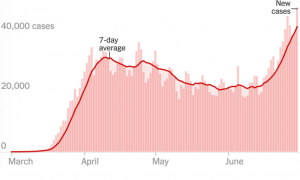 Let me raise the dreaded phrase – “a second wave.” It is hard to have a second wave when we have not had the first wave. That appears to be one of the misconceptions. The purpose of sheltering in place was to give the medical systems in various states the time to prepare in terms of equipment, space, and personnel to deal with a major increase in cases. Somewhere along the line, the message became: when the economies have reopened, the virus has gone away. Wrong. The spread of the virus was suppressed. It is still there and will continue to be there until there is either a truly effective treatment, a vaccine that is at least 50% effective, some degree of herd immunity has built up in the populace, or some combination thereof.