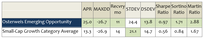 Such investments are risky, though potentially rewarding. Our first recommendation is to rely on a manager who’s succeeded through both the good times and the hard ones. Our second recommendation is to add Osterweis Emerging Opportunity to the due-diligence list for investors and advisers looking for sustained, risk-conscious excellence.
