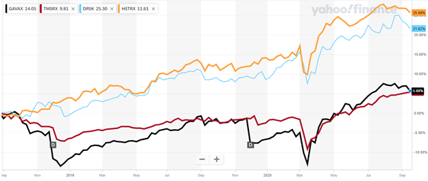 I identified in Flexible Portfolio Funds With High Risk-Adjusted Returns that KL Allocation (GAVAX), a Flexible Portfolio Fund, is one that I may be interested in purchasing. In this article, I look at the fund performance of 17 funds over the past 25 years to enhance a strategy of how I want to invest over the coming decade with stock valuations so high, and interest rates so low. The focus is on Flexible Portfolio Funds but includes Alternative Multi-Strategy Funds and Absolute Return Funds among others. I have narrowed the list of funds to consider to 15. The four finalist funds are T. Rowe Price Multi-Strategy Total Return (TMSRX), an Alternative Multi-Strategy fund, and KL Allocation Fund (GAVAX/GAVIX), which are described by David Snowball, Aptus Defined Risk ETF (DRSK) described by Alpha Gen Capital in Fund Spotlight: Aptus Defined Risk Strategy ETF, and Hussman Strategic Total Return (HSTRX). These are shown in Table #1 and Figure #1. The difference for GAVAX between the return in the table and price in the figure is that it paid an annual dividend of 7.5% TTM. All four funds had low drawdowns during the COVID bear market.