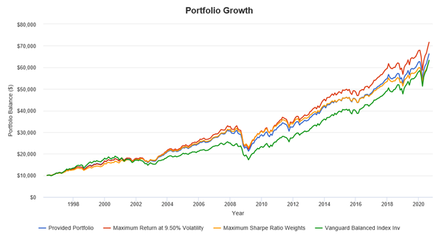 | Ticker | Name | Allocation | Max Rtn @ 9.5% Vol | Max Sharpe | VBINX |
