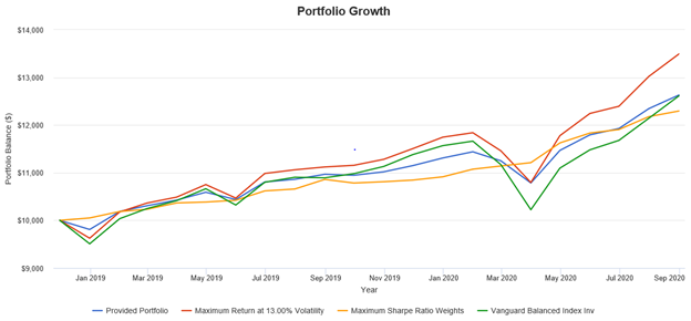 | Ticker | Name | Allocation | Max Rtn @ 13% Vol | Max Sharpe | VBINX |