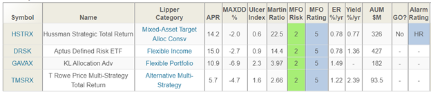 | HSTRX | Hussman Strategic Total Return | 12.0% | 2.4% | 17.8% | |