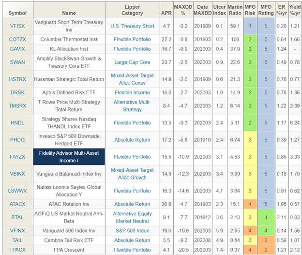 Source: MFO Premium fund screener and Lipper Global Datafeed