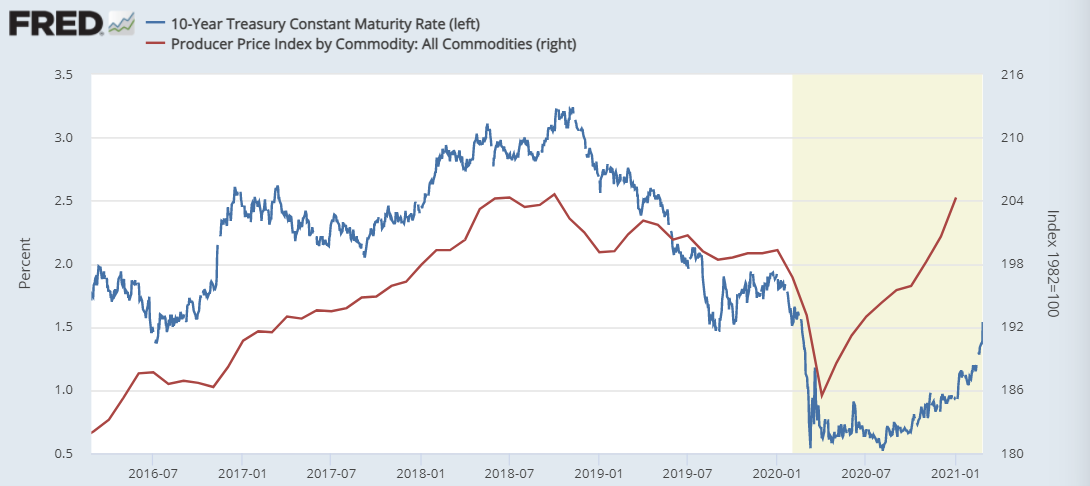 Inflation provides a contrarian view to the recovery as explained by Michael Lebowitz in Will “Go Crazy” Drive The Bear Out Of Hibernation?. Much of the inflation in asset prices is due to monetary policy. As inflation on consumers rises and bond yields rise, the Federal Reserve may have to tighten monetary policy: