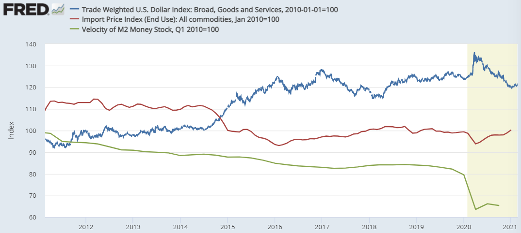 Figure #3: Velocity of Money, Dollar, and Import Prices