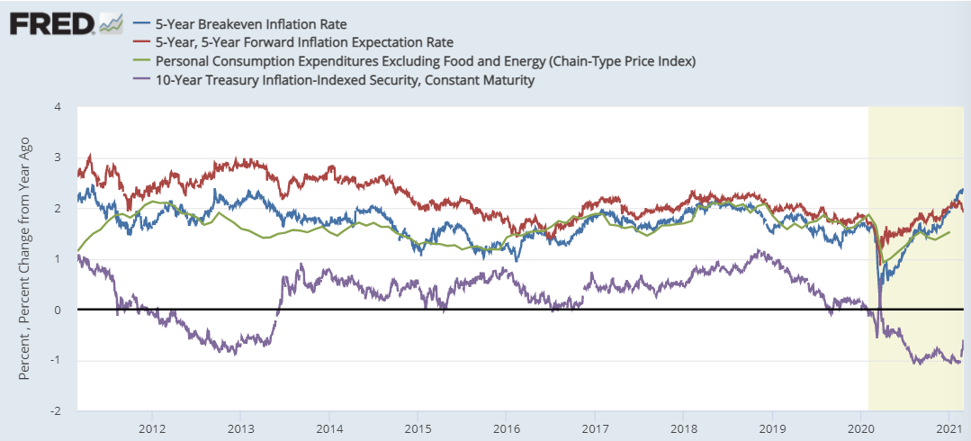 My belief is that we are at a period of high valuations which will mean revert at some point over the coming decade bringing lower returns as valuation multiples fall. Funds have been flowing into fixed asset funds including inflation-protected bonds. With vaccines, the recovery will probably continue, and stimulus will have to be reduced to prevent inflation. There are some valid drivers of inflation as well as market manipulation. The timing of when this happens is rather murky.