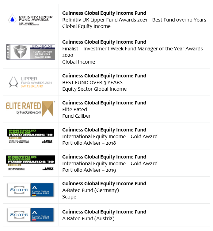 Ian Mortimer and Matthew Page. Dr. Mortimer joined GA in 2006 and also co-manages the Global Innovators (IWIRX) fund. Prior to joining GA, he completed a doctorate in experimental physics at the University of Oxford. Mr. Page joined GA in 2005 after working for Goldman Sachs. He earned an M.A. from Oxford in 2004. The guys also co-manage European versions of their funds including the Dublin-based version of this one, the $1.7 billion Guinness Global Equity Income.