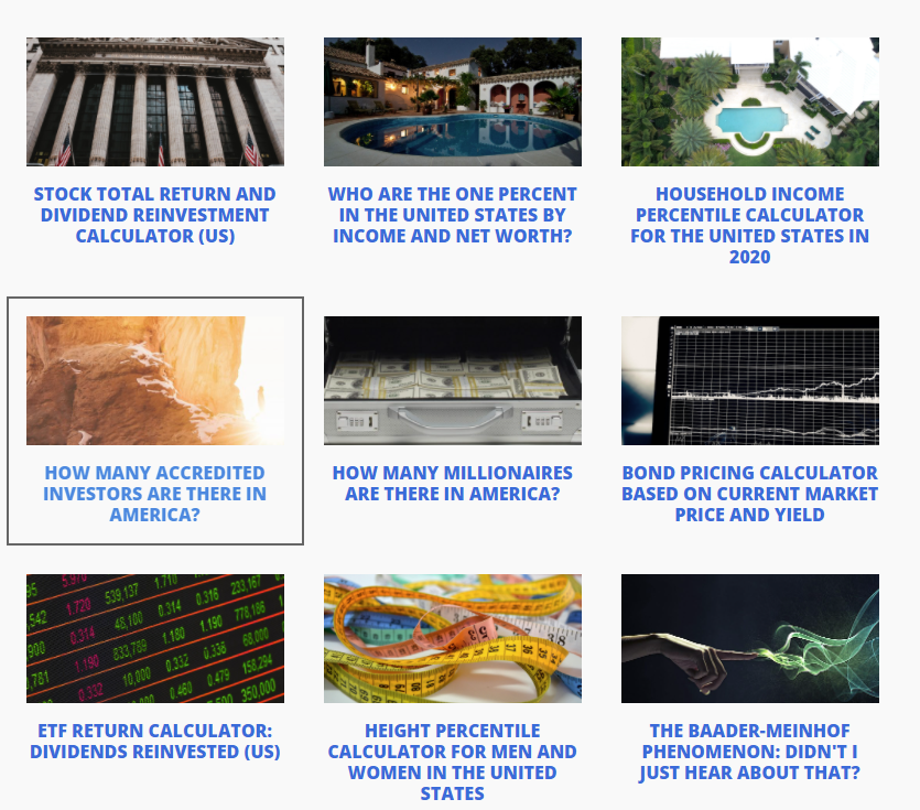 In working to answer a statistical question on Ed’s behalf, I came across a website apt to delight the geeks in your life: https://dqydj.com/. It stands for “Don’t quit your day job,” a finance and investing website that’s older than we are. How did I not notice?