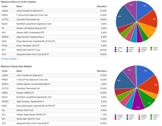 Figure #2: Moderate (14% Volatility) and Conservative (Maximum Sharpe Ratio) Portfolios