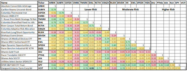 Table #4: Correlation Matrix of Funds with Low Correlation to the S&P 500