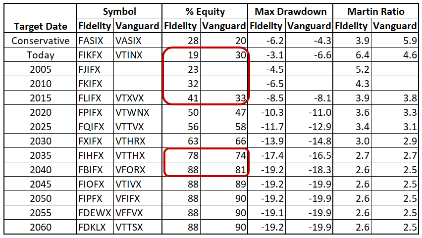 Table #3: Glide Path of Vanguard and Fidelity Target Date Funds