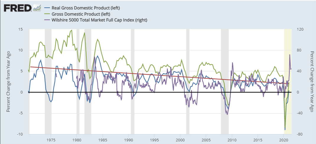 Figure #3: Annual Growth of GDP, Real GDP, and Wilshire 5000