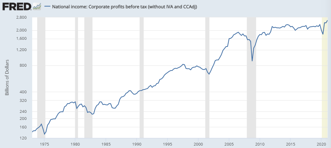Corporate profits (before taxes) have not grown significantly in 10 years.