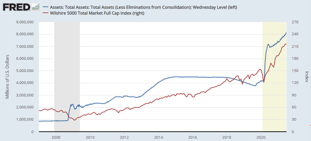 Figure #5: Total Value of the Assets of all Federal Reserve Banks vs Wilshire 5000