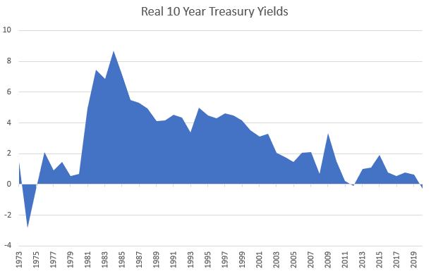 Real yields (adjusted for inflation) on ten-year Treasuries have come full circle from being nearly zero in the 1970’s to eight percent in the early 1980’s back down to zero for parts of the last decade. Funds that have benefited over the past 40 years from investing in long duration bonds will not have this benefit in this decade.