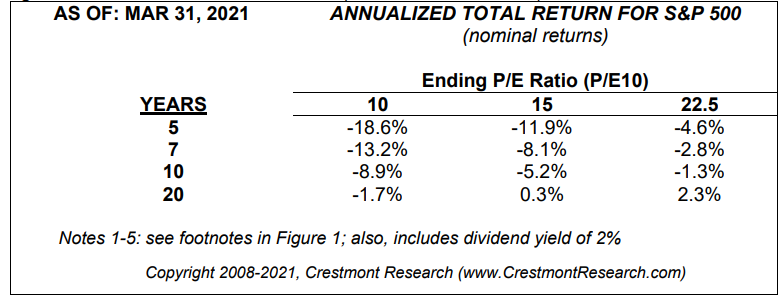Mr. Easterling shows the impact of normalizing current valuations over different time periods in Table #1. The conclusion should be that stock market returns during the coming decade(s) will be much lower than the past decade(s).