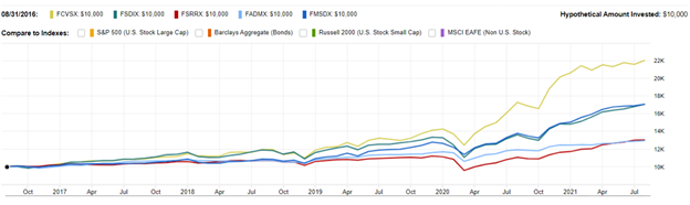 The Growth of $10,000 in these five funds for the past five years can be seen in Figure #1. Note that the performance of some of these funds has improved since the 2020 correction as can be seen in the YTD performance in Table #1 above or Figure #1 below. This is due to FMSDX being able to take advantage of volatility to find value among asset classes, and FSRRX protecting against inflation. FADMX had relatively stable performance, and by assets under management is the most popular fund. FCVSX and FSDIX have done well, but are not covered in this article, because of higher risk ratings.