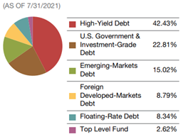 Fidelity Multi-Asset Income Fund invests tactically across domestic and global equities, investment-grade debt securities, high-yield bonds, preferred stock, floating-rate securities, bank loans, emerging-markets debt, and real estate investment trusts in order to take advantage of short and long term market opportunities. The key take-aways from Adam Kramer, “Income and inflation: What you should know” (Fidelity Viewpoints, July 13, 2021) are: