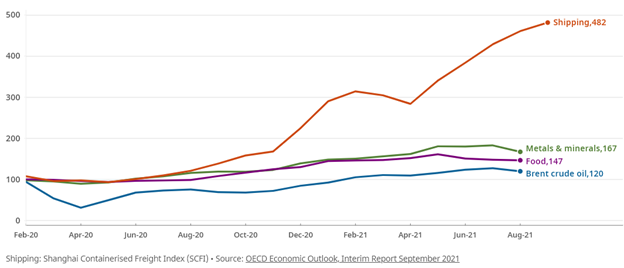 Inflation has many components and some are rising as shown in Figure #4 by the OECD. Inflation is affected by technology, supply chain, globalization, and geopolitics. Some aspects of inflation may be transitionary, but others may be less so.