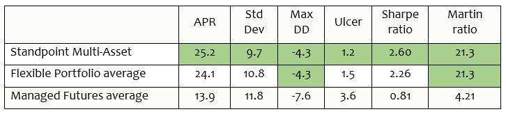 The argument for Standpoint is much like the old argument for managed futures: it can provide absolute positive returns with muted volatility even when the equity markets correct or the fixed-income markets are priced to return less than zero in the immediate future.