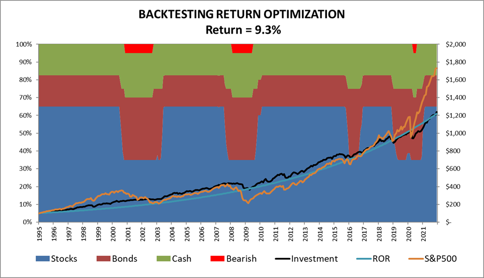 I discovered the St. Louis Federal Reserve FRED database around 2010 and began building investment models such as the current model shown in Figure #2. The model is based on 32 composite indicators of which the two most negative are inflation and valuations but also productivity, investment, and housing. The S&P 500 has delivered 11% returns for the past 27 years with three major bear markets. Investing according to the Investment Model would have delivered 9.3% annualized returns with lower risk (drawdowns) than the S&P500. Much of the gains in the S&P500 are due to quantitative easing artificially increasing asset prices.