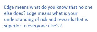 “What do you mean edge? Isn’t it our job to speculate?” I naively asked.