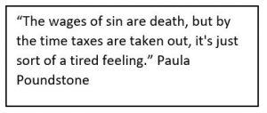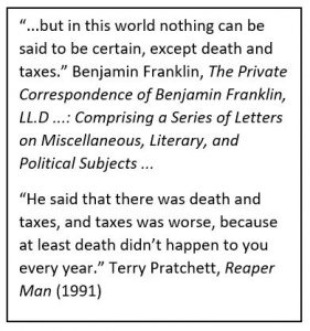 I’ve been told that some people find taxes numbingly dull and perplexing. Who could imagine? Just to help you target your attention, I’ll break this essay into five parts.