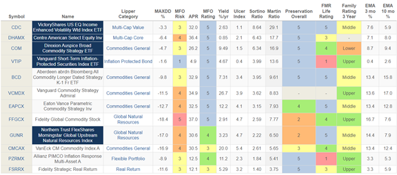 Commodities can be volatile and I look for a diversified approach to protecting against inflation. Table #3 contains funds that have done well over the past two years which may help protect against inflation.