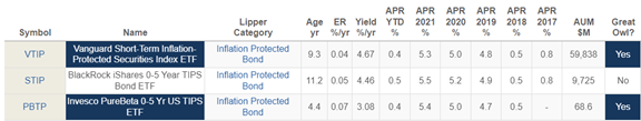 Short-Term Inflation-Protected Bonds (VTIP, STIP, PBTP). These funds are up over 0.75% year to date as of March 17th.