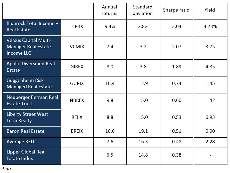 In limited doses, real estate funds have the potential to temper a portfolio’s volatility and generate a fair amount of dividends. The vanilla (equity REIT focused) funds are likely to best serve this purpose. Alternatives exist if one is more focused on income or if one is more interested in real estate-related growth.