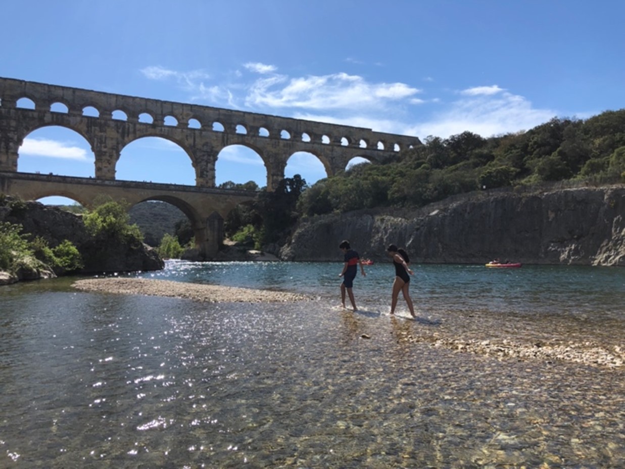 At the Pont Du Gard where a two millennium-old aqueduct crosses the river Gardon.